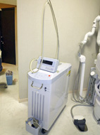 左側が知覚過敏、歯周病、歯ぐきの黒ずみや歯を白くする際に使用する高周波レーザーです。