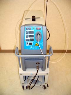 患部にレーザーを照射して治療します。レーザー治療は、@処置が簡単、Aほとんど痛みのない治療が可能、B治療効果が現れるのが早く、局所麻酔をほとんど使用しないで治療を行うことが可能、などのメリットがあります。