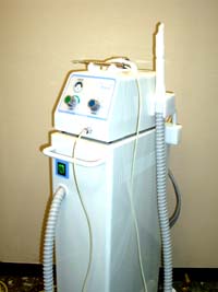 オフィスホワイトニングは歯科クリニックにて行われるホワイトニングの事で、左の写真の医療機器を用いてホワイトニング剤に光を照射します。