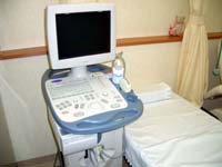 周波数の高い音を人体に発射し、はねかえってきた音をキャッチして画像にする装置です。超音波は人体には無害なので、安心して受診頂けます。