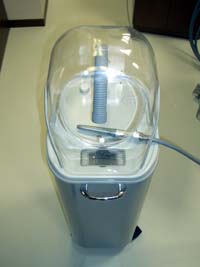 かぶせ物や入れ歯の調整をするとき、金属粉やプラスティックの粉を皆さんが吸い込まないように配慮しております。