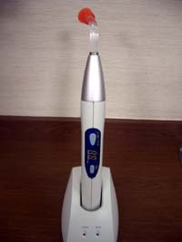 歯科医院で歯科医師があなたの歯にオフィスホワイトニング専用のホワイトニング剤を表面に塗りつけてライトソースを使用して、ホワイトニング剤を活性化させ効果を高める処置をします