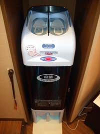 赤いボタンを押すと清潔なスリッパが出てきます。