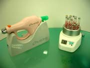 そこで当院では、電動麻酔器(写真左)を使用し、麻酔時の痛みを大幅に軽減しております。