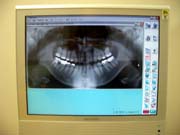 <デジタルレントゲン> 最新のデジタルレントゲンを採用してます。 従来のフィルム撮影に比べ、被曝量が大幅に軽減されていることが特徴です。 また、デジタル処理で行うため、撮影後すぐにご覧になれ、治療時間の短縮にもなります。