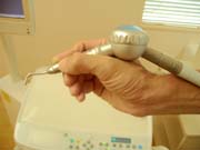 <電動麻酔器> 当院では、なるべく痛みの少ない治療を心がけています。 麻酔時の注射の痛みは、まずチクッという痛みの後、圧力がかかるような痛みが伴ないます。 そこで当院では、まずはしっかりと表面麻酔を行い、そのあとにコンピューター制御の電動麻酔器を使用しております。