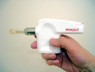 麻酔時の注射の痛みは、まずチクッという痛みの後、圧力がかかるような痛みが伴ないます。 そこで当院では、まずはしっかりと表面麻酔を行い、そのあとにコンピューター制御電動麻酔器を使用しております。