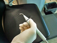研磨剤を強力に歯面に吹き付けて、茶渋やタバコのヤニ等を除去します。
