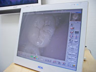 当院では細長いカメラで治療部位の画像を直接ご確認頂いております。