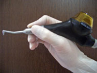 研磨剤を強力に歯面に吹き付けて、茶渋やタバコのヤニ等を除去します。