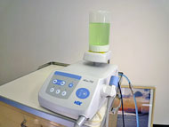 症例に合わせて様々な薬液を用い、超音波振動と水流で強固な歯石を崩して洗い流す機械です。
