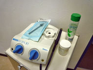 当院では患者様がその粉塵を吸い込まないように診察台横に強力なバキュームを設置しております。