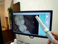 当院では細長いカメラで治療部位の画像を直接ご確認頂いております。
