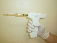 また、麻酔時の押されるような圧力痛を軽減する為に一定の圧力でゆっくりと麻酔処置が可能な電動麻酔器を用いております。