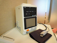 全身管理モニターにて治療中の血圧はもちろん、心電図・心拍数・脈拍数などを管理しながら治療ができます。 主に手術の際に使用します。