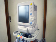 全身管理モニターにて治療中の血圧はもちろん、心電図・心拍数・脈拍数などを管理しながら治療ができます。 主に手術の際に使用します。